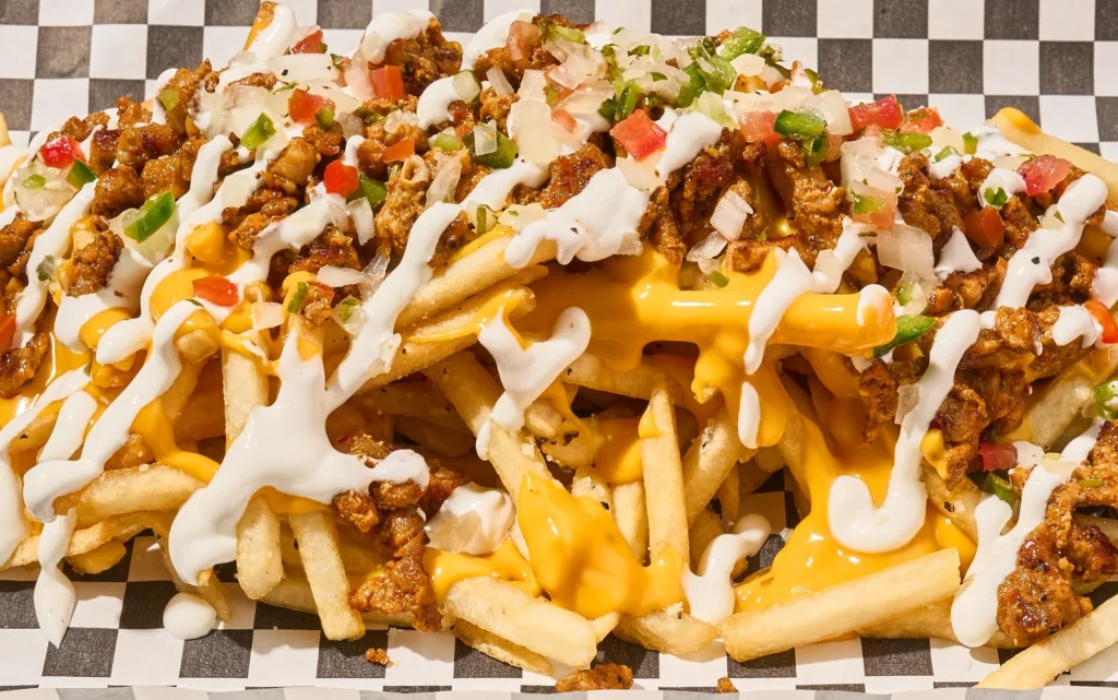 Ingredientes: Carne Ó Pollo Pimiento, cebolla, bacon, queso y sour
